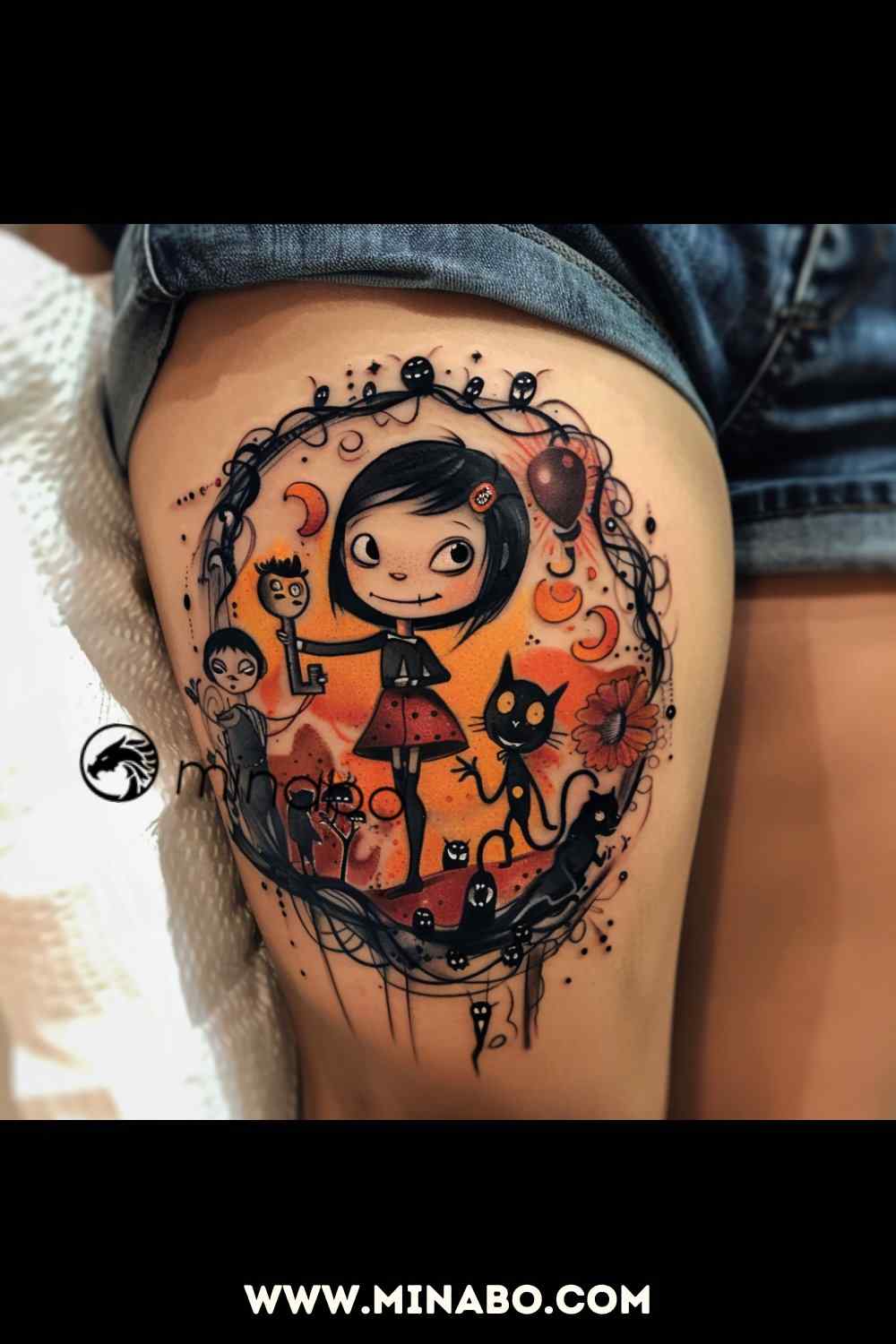 Si estás buscando el tatuaje perfecto de Coraline, explora nuestra galería en Minabo Tatuajes.