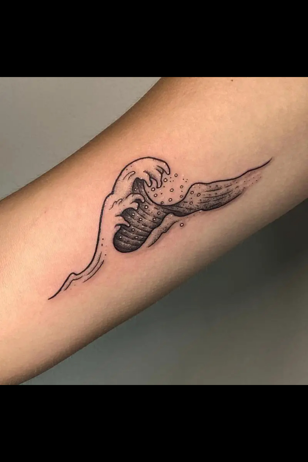 Un tatuaje de ola es ideal para quienes buscan un diseño minimalista pero cargado de significado, recordando que, como el mar, la vida siempre está en movimiento.