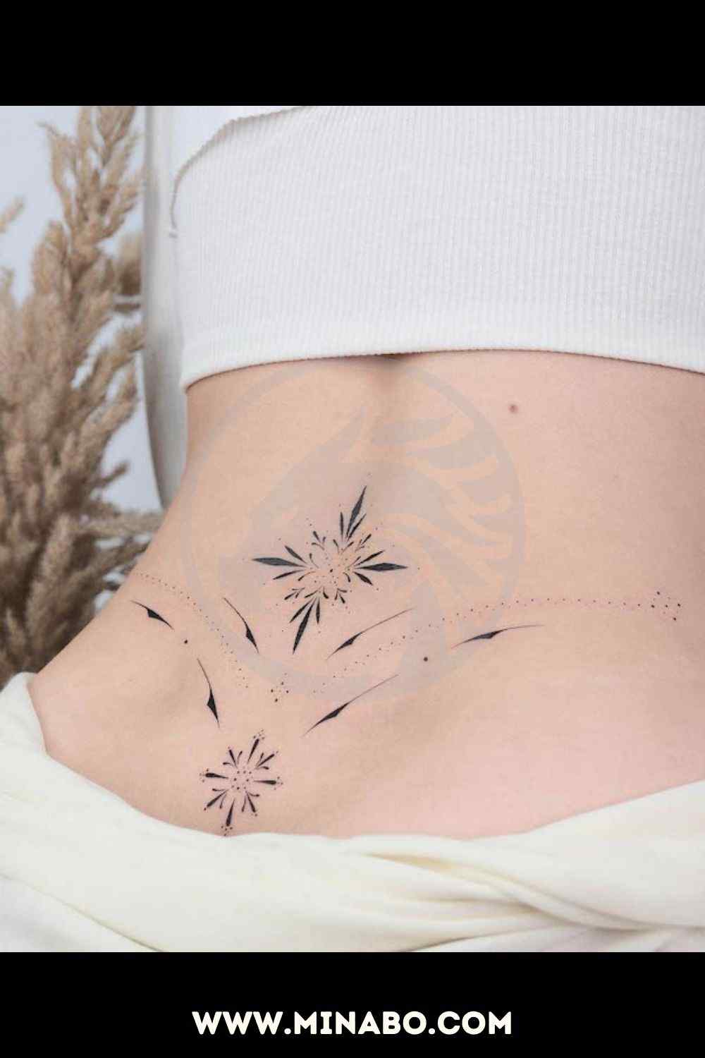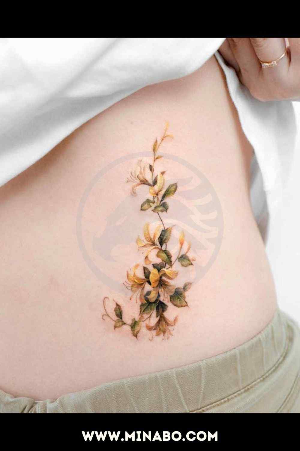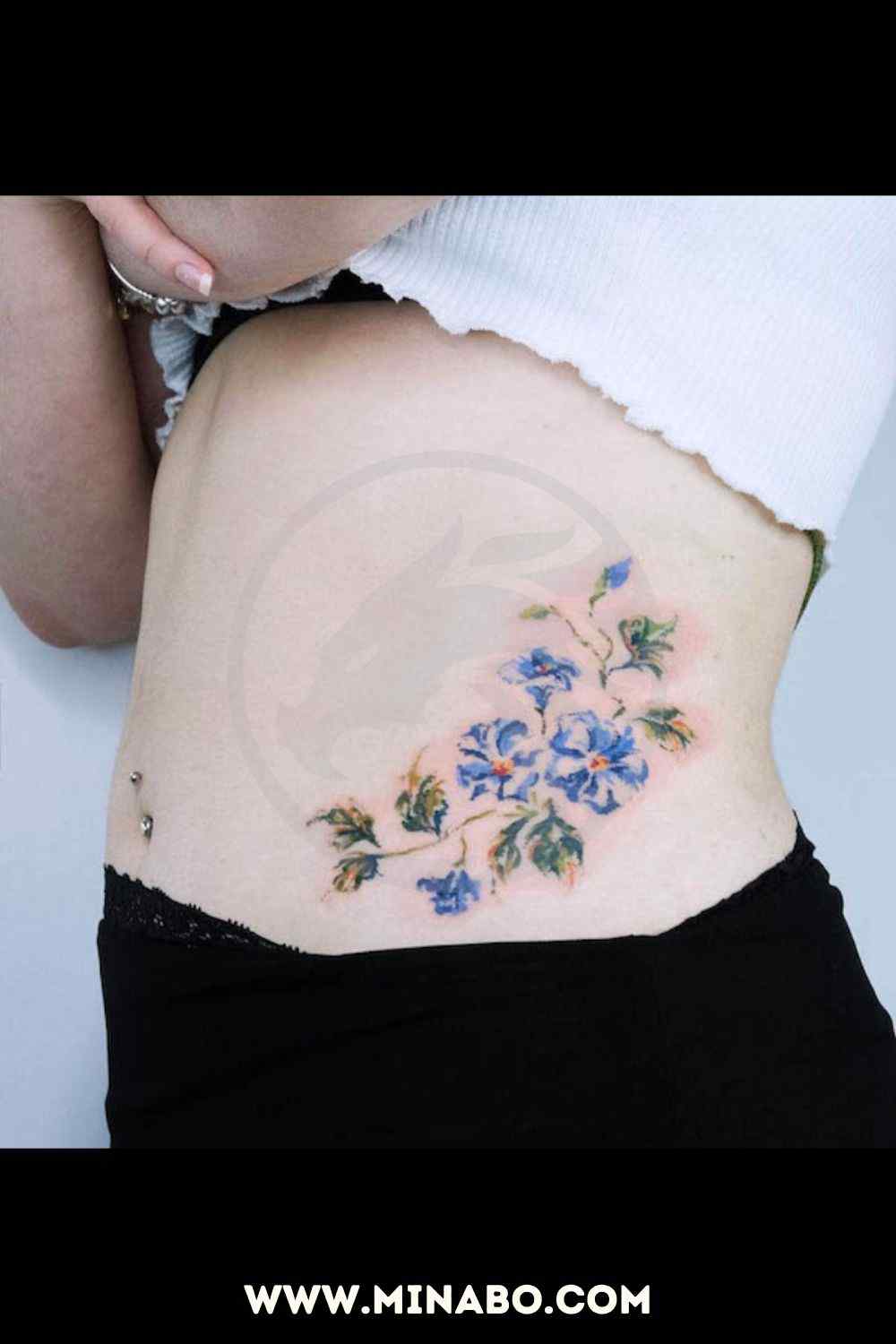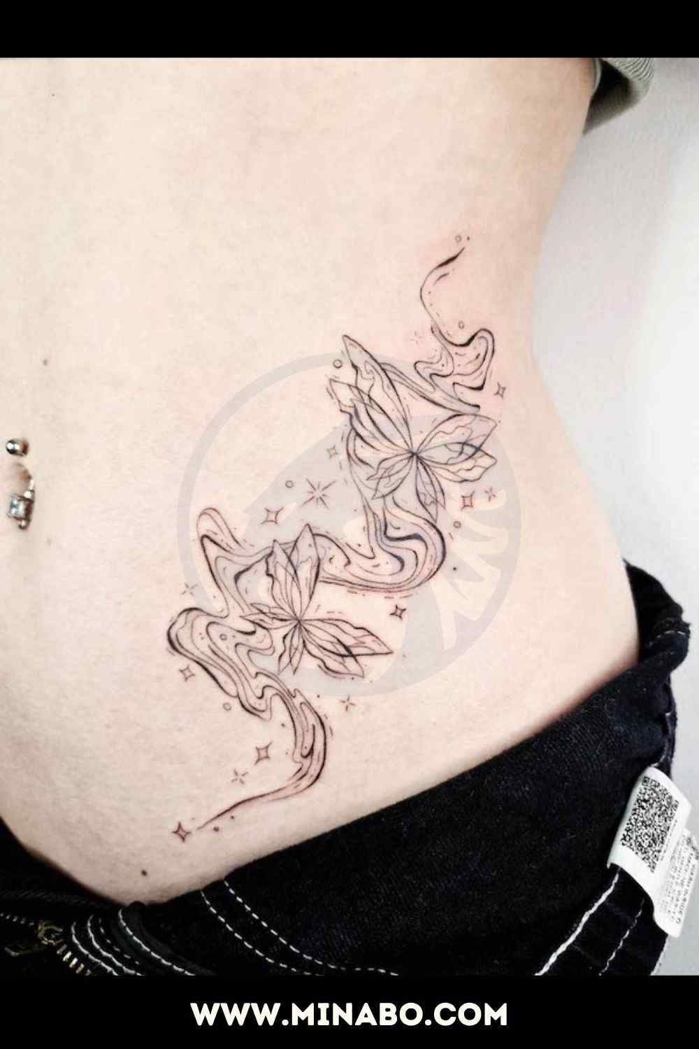 Este tipo de tatuaje suele fluir hacia un lado de la cintura, creando una estética delicada y femenina.