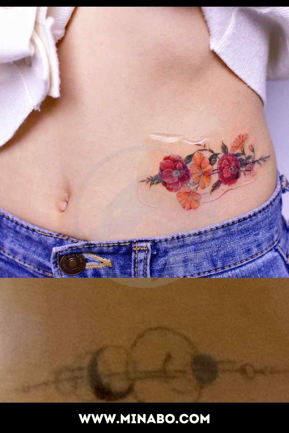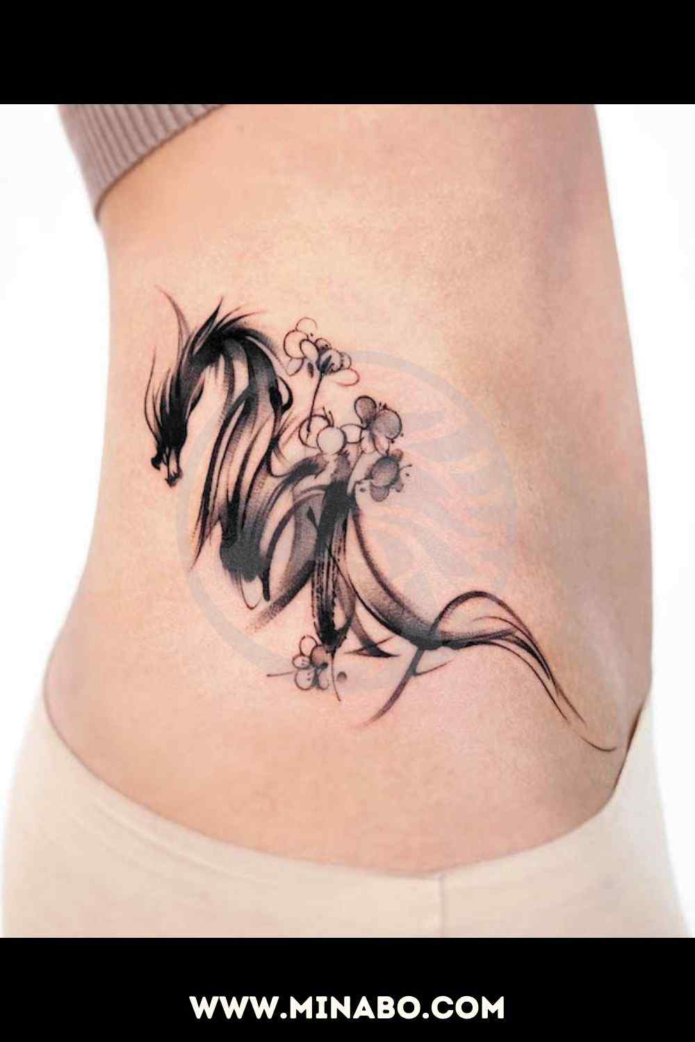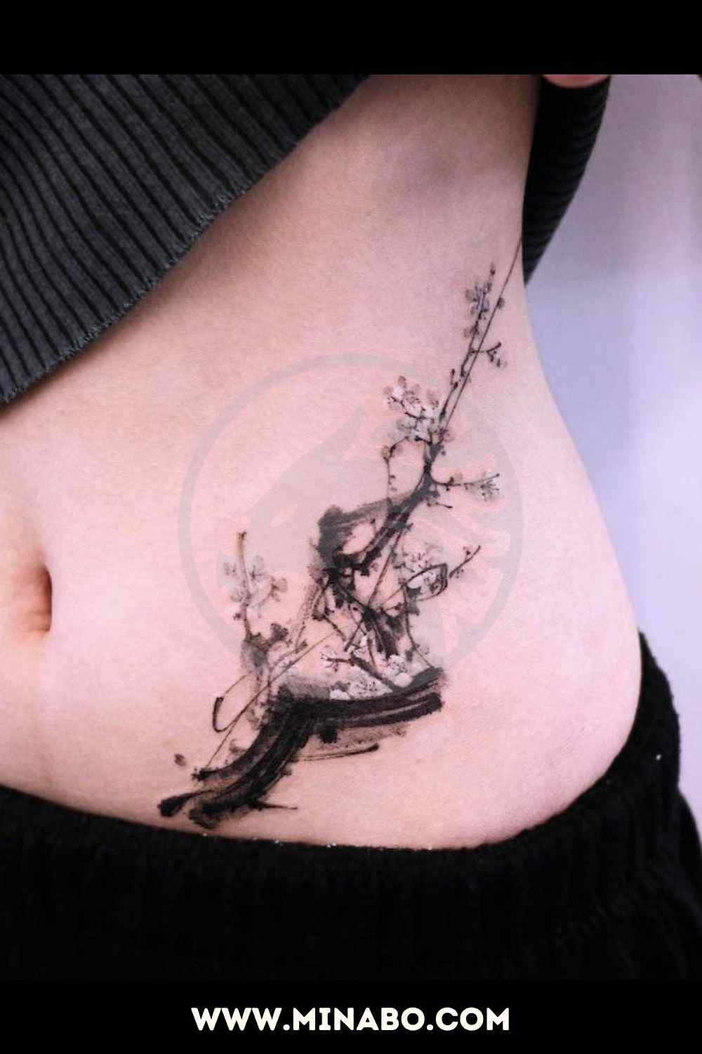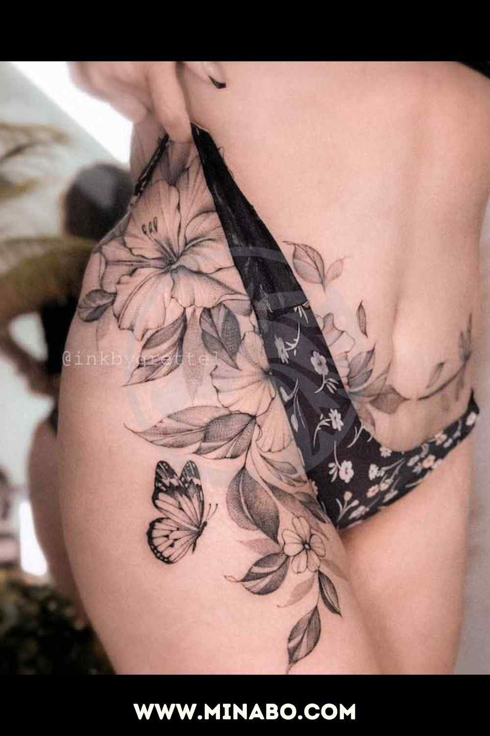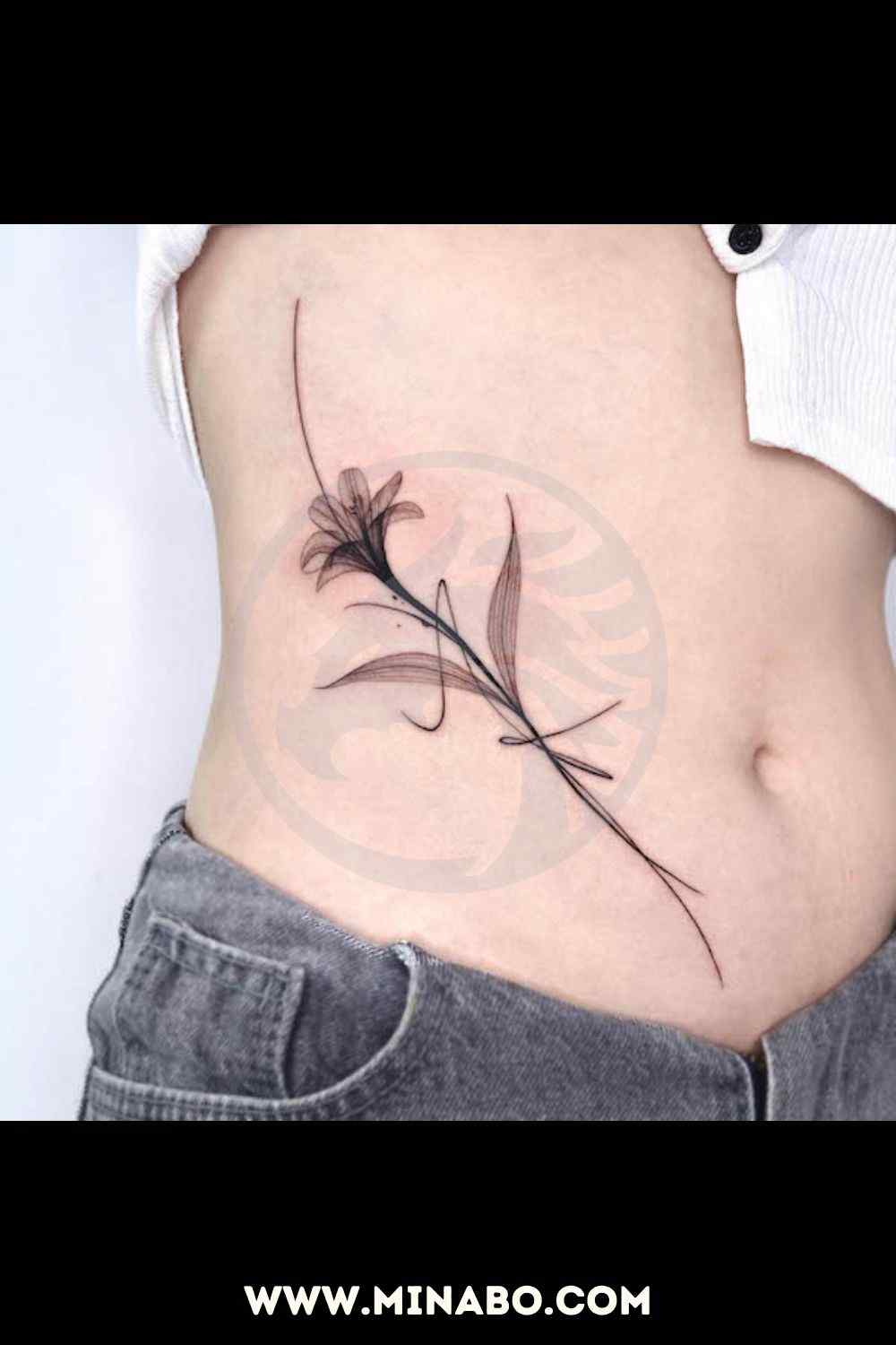 Este tipo de tatuaje suele fluir hacia un lado de la cintura, creando una estética delicada y femenina.