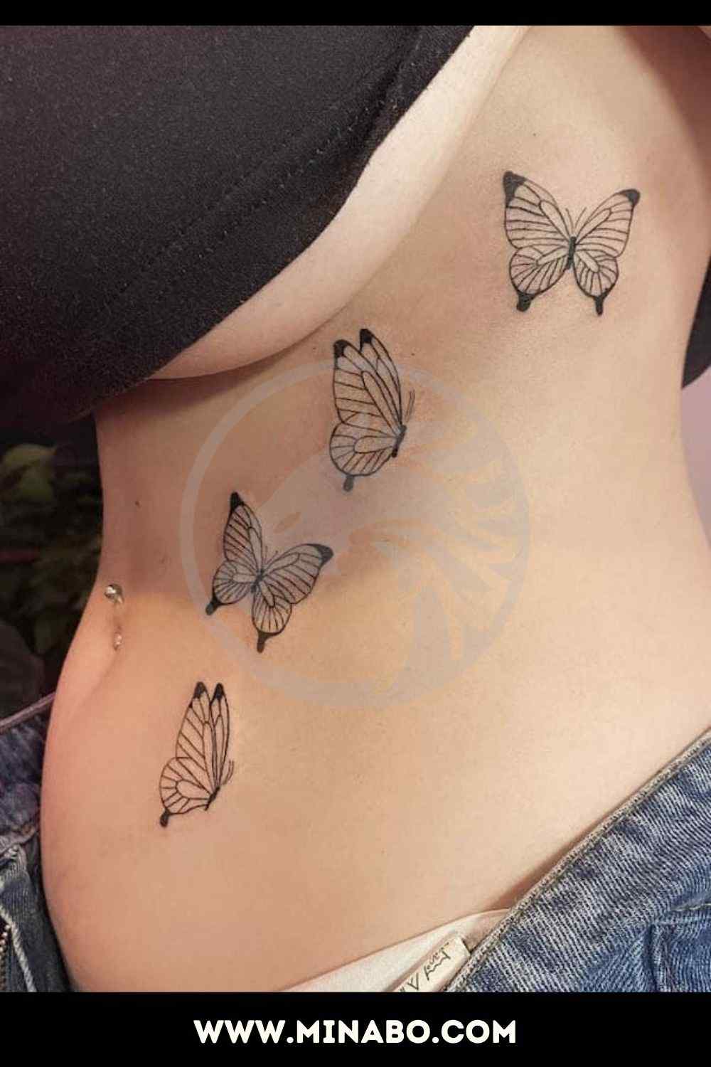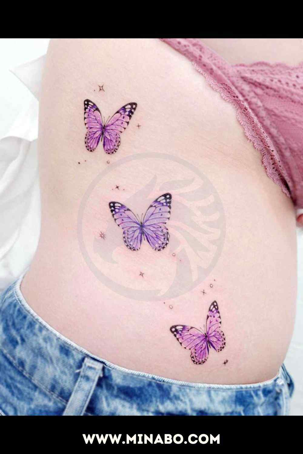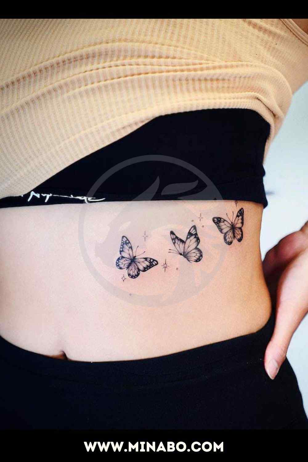 Las mariposas son un símbolo de transformación, libertad y belleza, y son ideales para un tatuaje en la cintura.