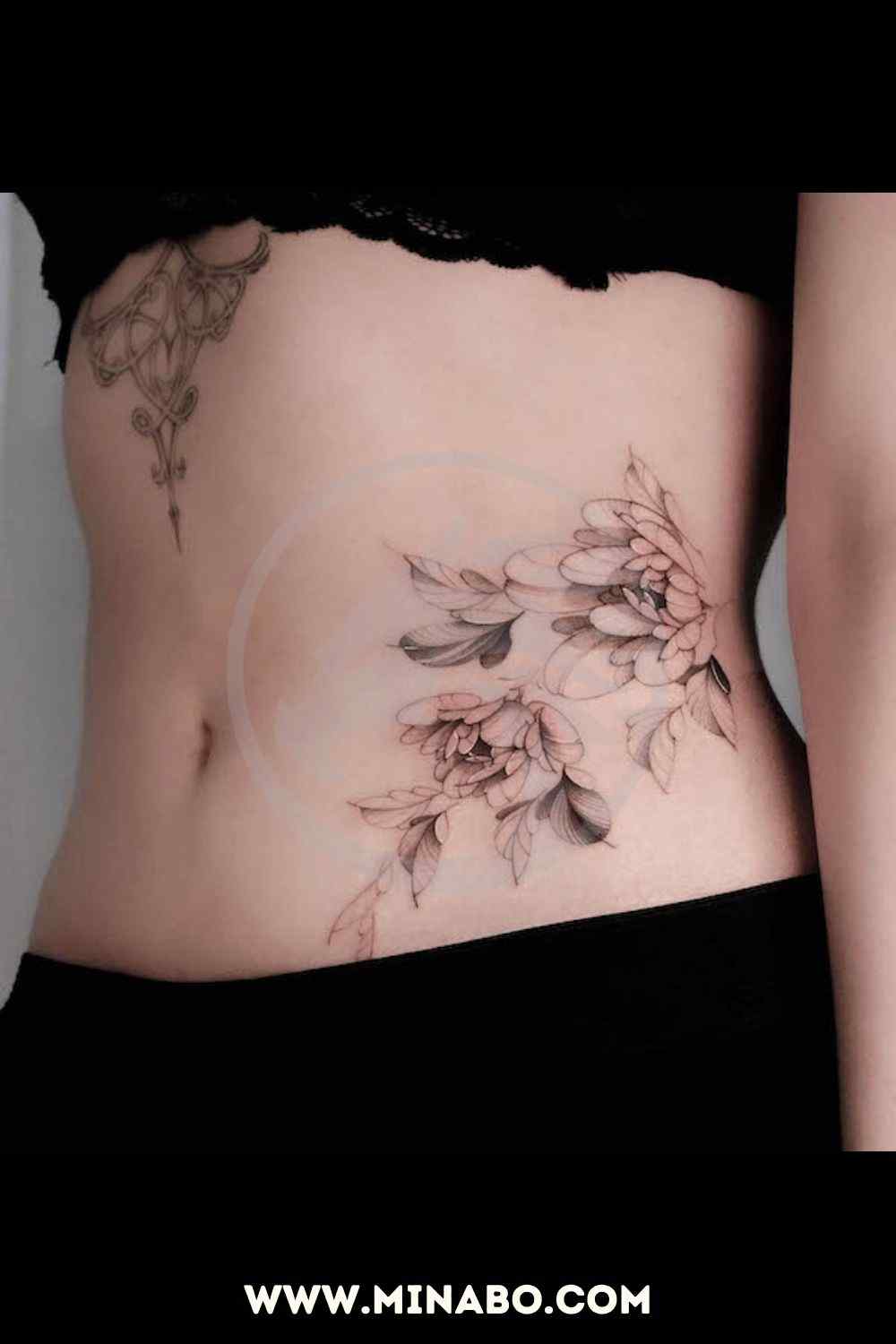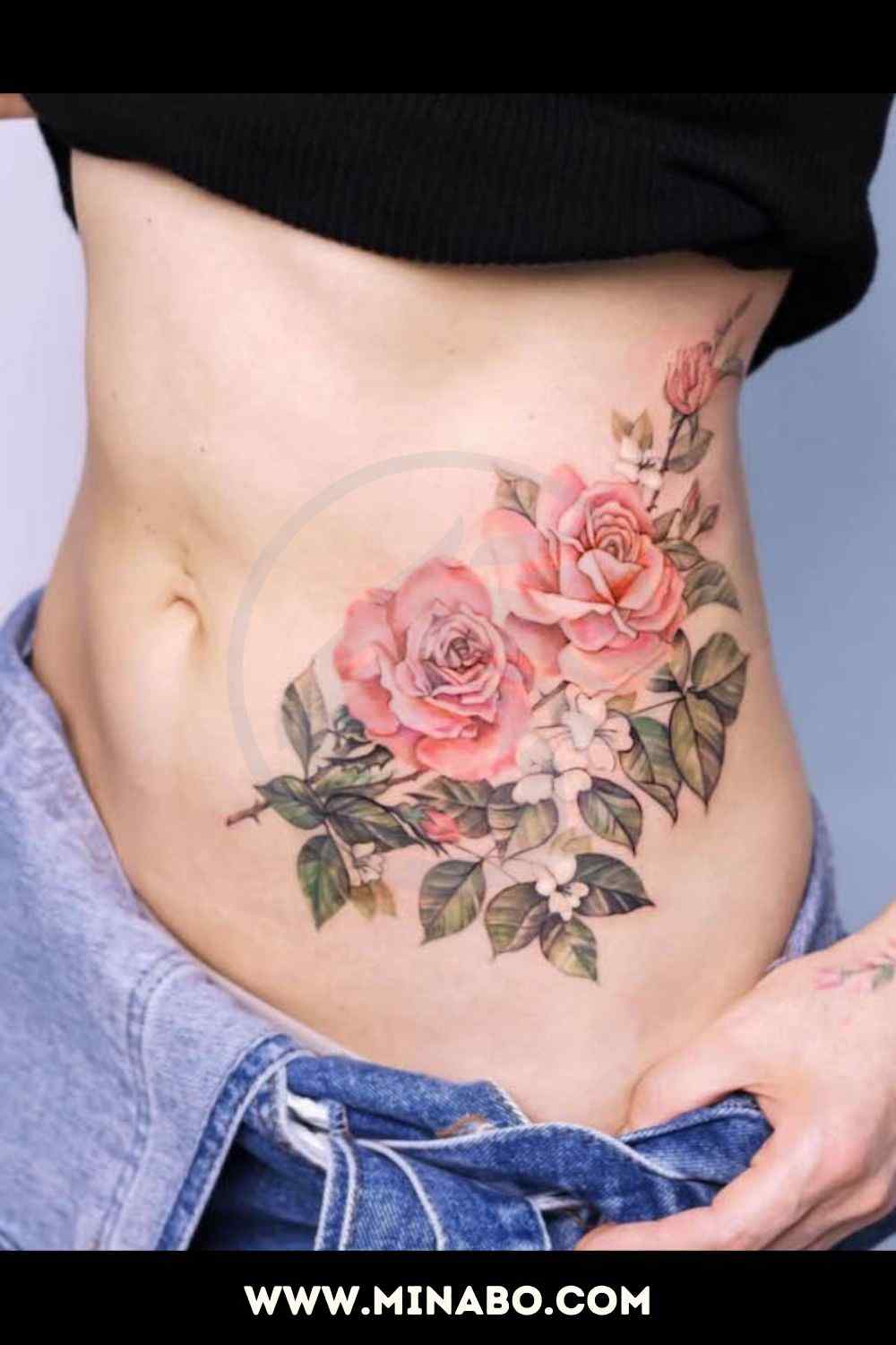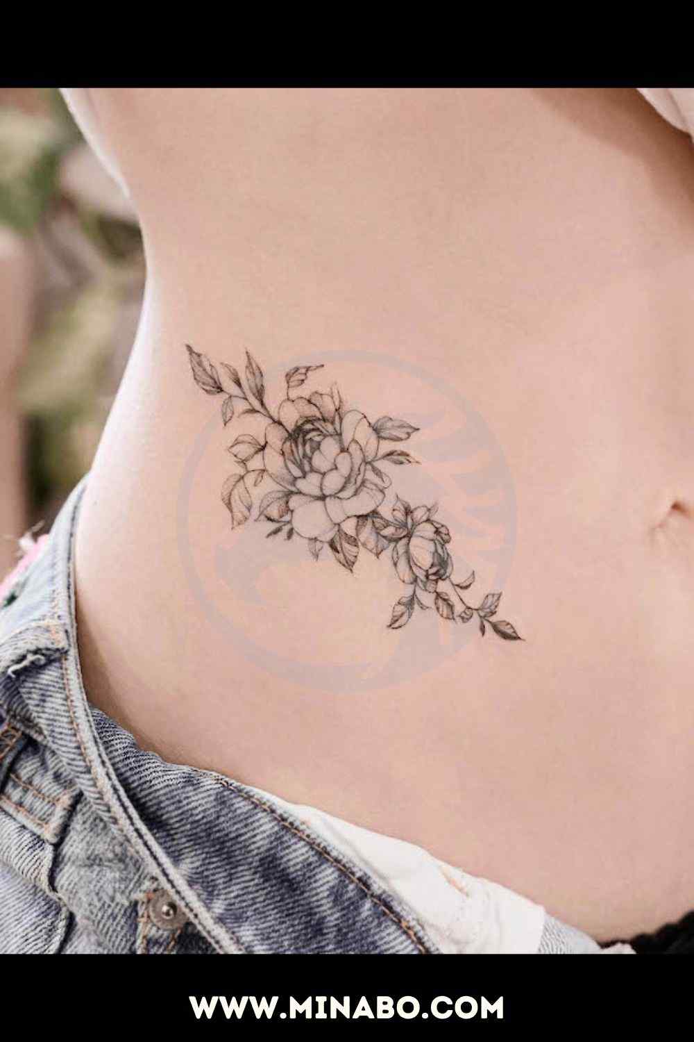 Los tatuajes de flores son una de las opciones más populares para la cintura debido a su capacidad de adaptarse a las curvas naturales del cuerpo.