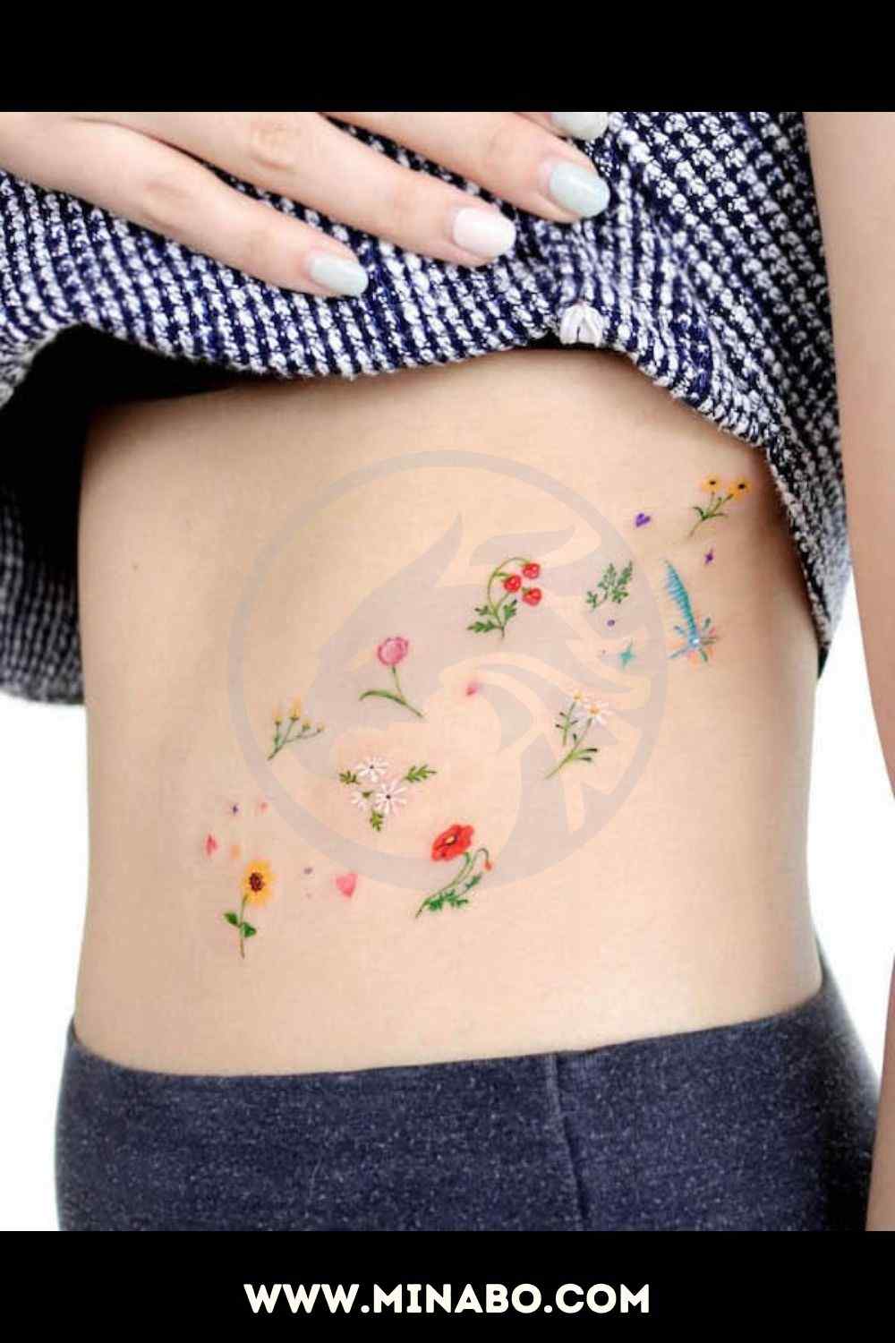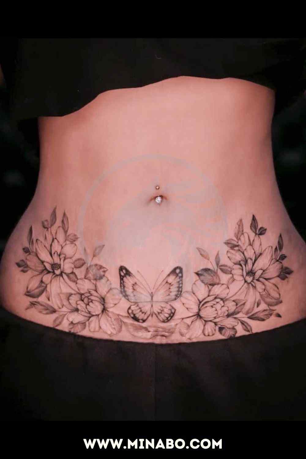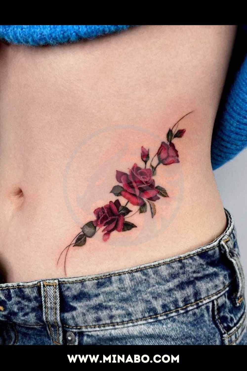 Los tatuajes de flores son una de las opciones más populares para la cintura debido a su capacidad de adaptarse a las curvas naturales del cuerpo.