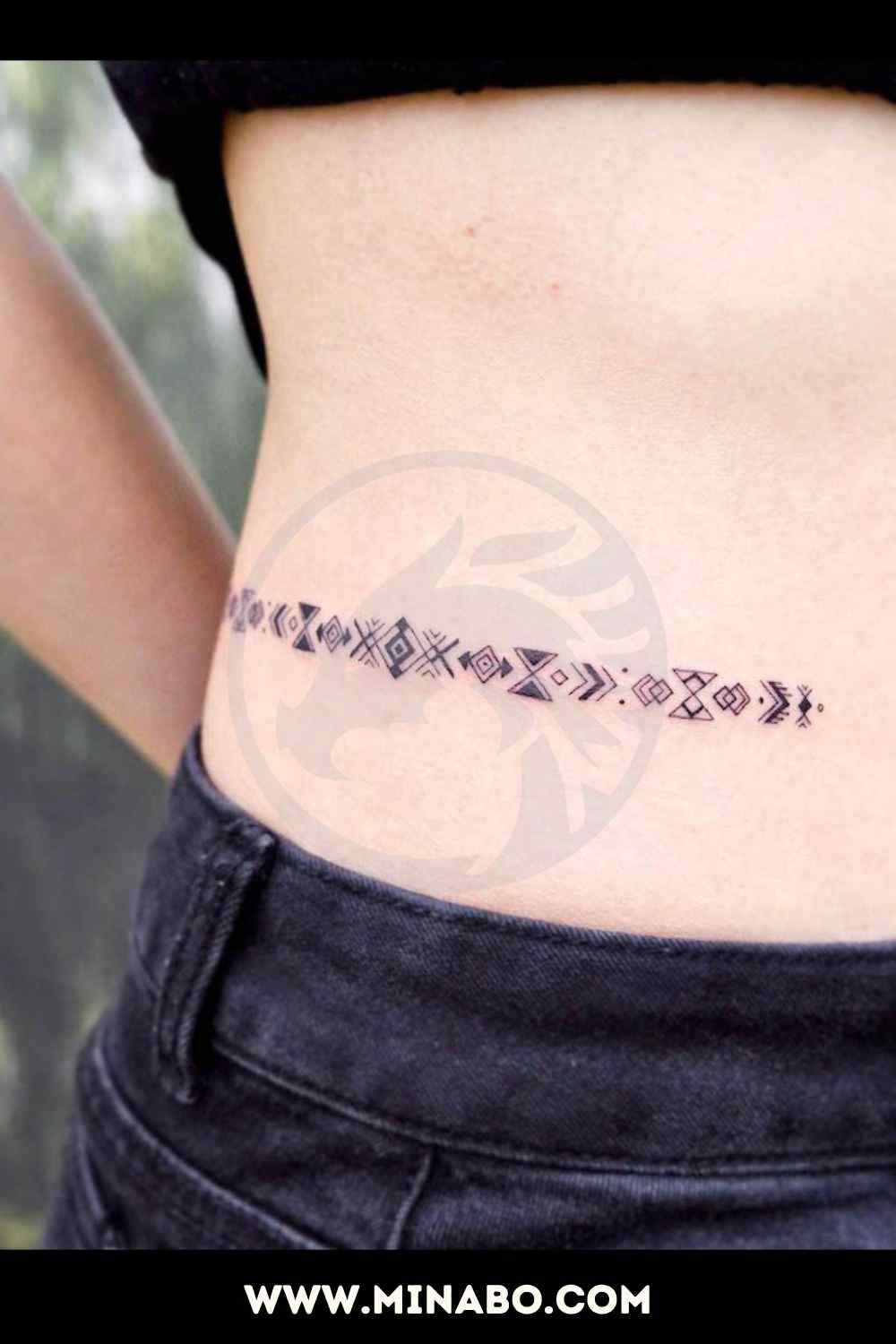 Los diseños geométricos son una opción moderna y estilizada para un tatuaje en la cintura.
