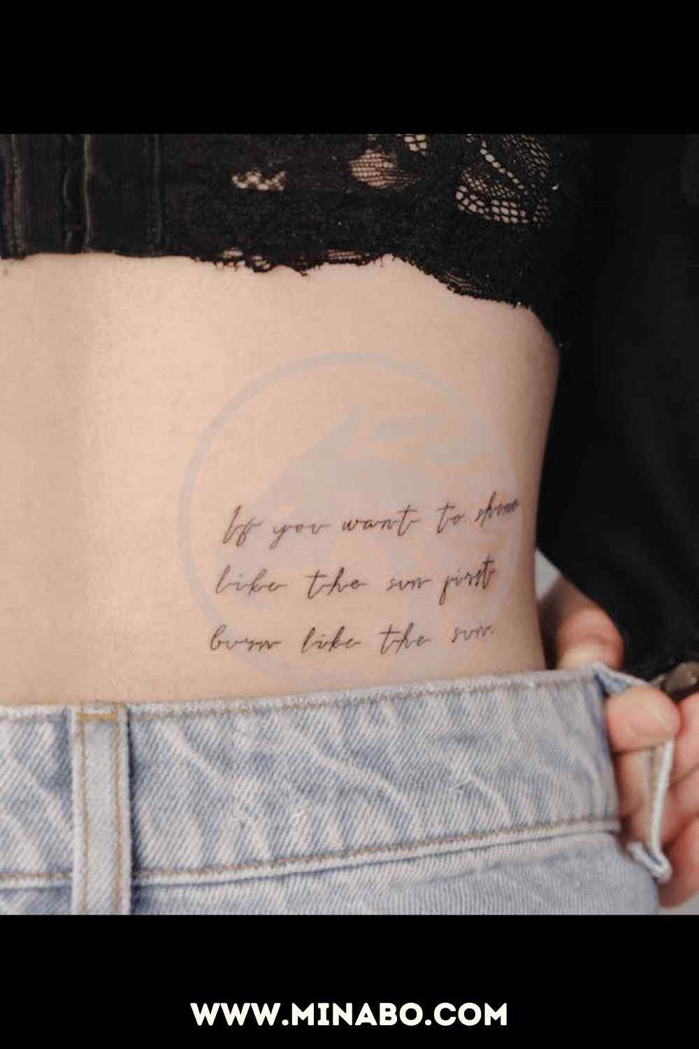 Las frases o palabras con significado especial son perfectas para un tatuaje en la cintura.