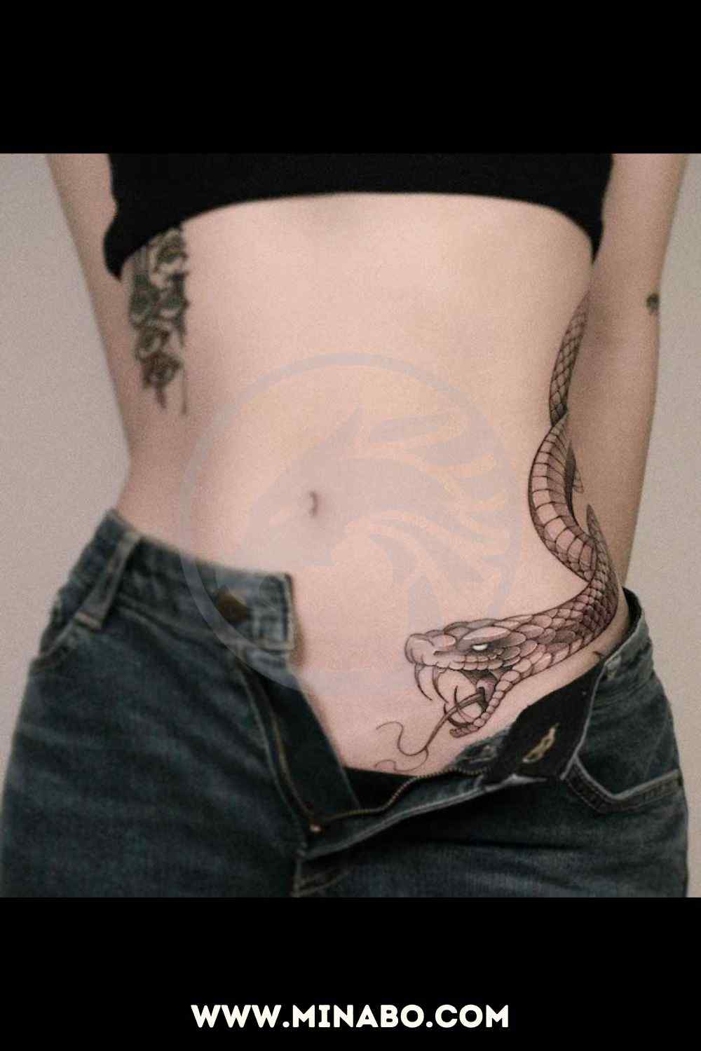 Un tatuaje de serpiente que se enrosca alrededor de la cintura puede ser una declaración visual impactante, representando la regeneración y el crecimiento personal.