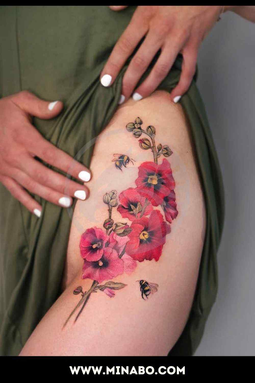 Además, las flores son versátiles: pueden ser pequeñas y sutiles o parte de un diseño más grande que se extienda hacia la cadera o el abdomen.