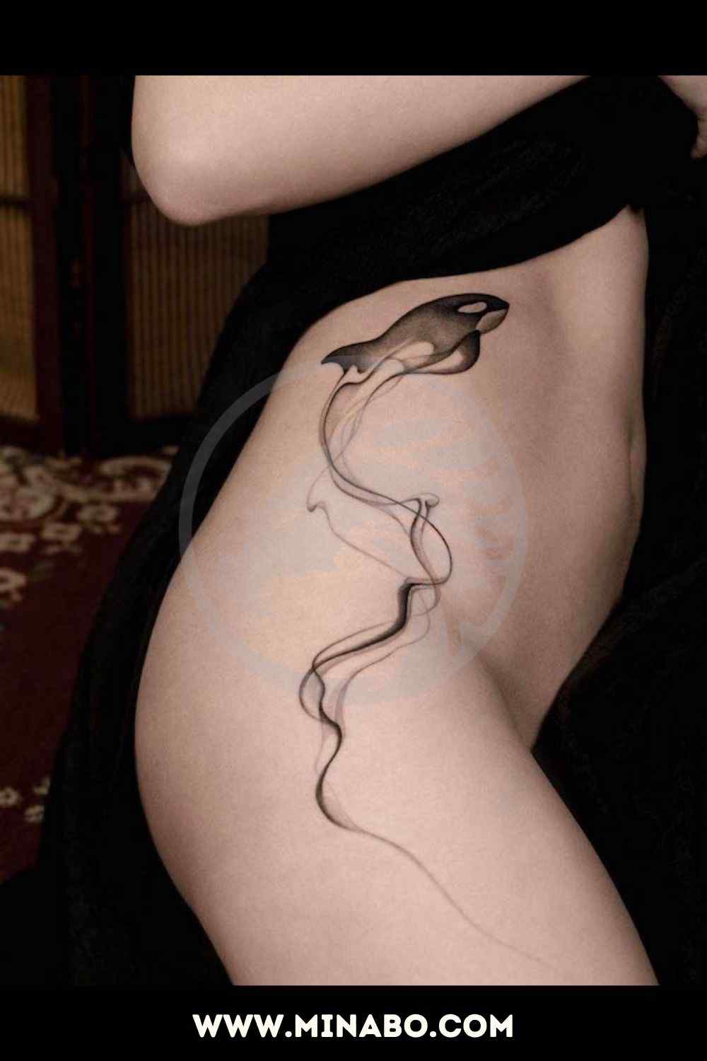 El lado de la cintura es ideal para tatuajes más grandes o diseños que fluyan, como flores, serpientes o mandalas.